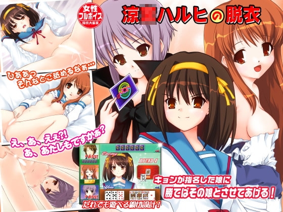 涼宮ハ○ヒの憂鬱に出てくる最強のツンデレ少女『ハル○』、○リで巨乳な天然少女『み○る』、無口な不思議少女『有○』の魅力的な3人の女子高生とトランプの大富豪で対戦する! 勝てばご褒美のえっちなCGと迫力のエロボイスが楽しめます。