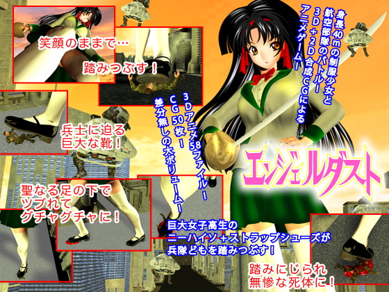 巨大制服少女の女学生用シューズ+ニーハイソックスによる踏み潰しを