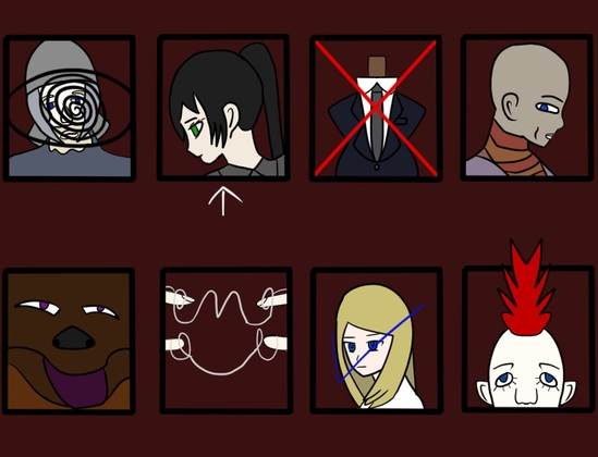 八名の人物のうち誰かを選択し、ソイツと選ばれなかった人物が殺し合う様相を見ます。