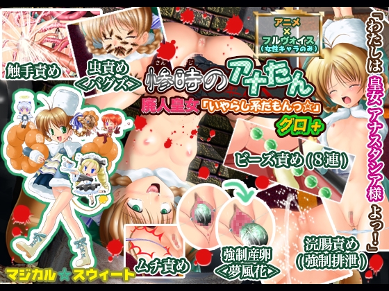 シャドウ○ーツ2の皇女アナ○タシアさまに色々な責め苦を与えて廃人にしちゃう同名タイトルのゲームに、グロシーンを追加しちゃった作品ですっ!