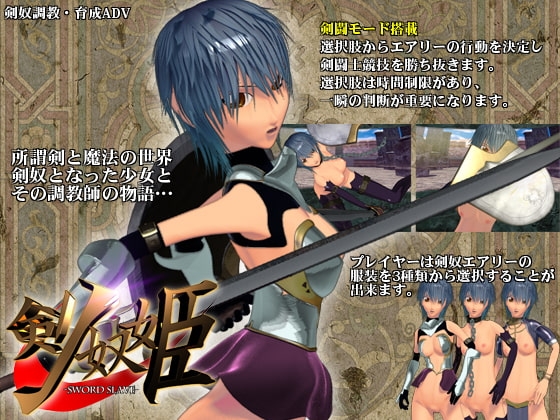 剣奴訓練師として奴○の少女、エアリーを剣奴へと調教育成するAVGです。戦闘は選択に時間制限があり白熱のバトルが楽しめます。CG枚数22枚(差分含まず)