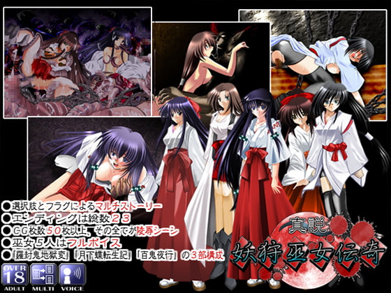 巫女陵○マルチストーリーデジタルノベル「真説妖狩巫女伝奇」、物語は複雑に絡み合い、巫女達の運命も180度変化していきます。
