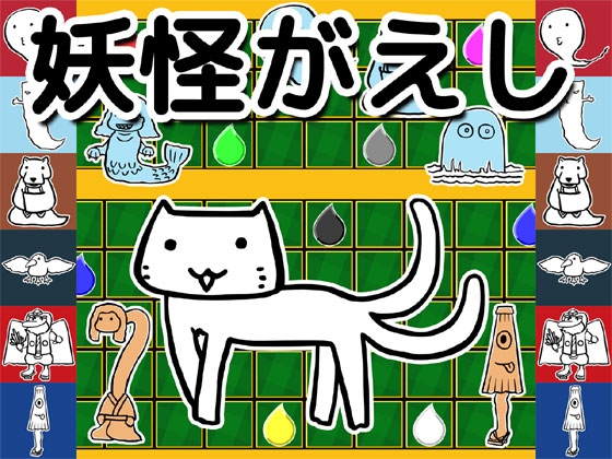 変形盤面のリバーシゲームです。妖怪にちなんだ盤面を40ステージ収録しています。